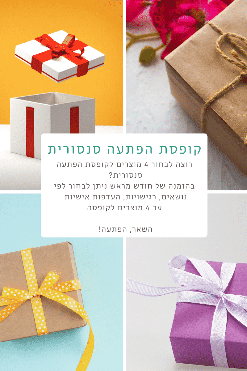 תגיות: חד פעמי, מנוי שנתי, קופסת הפתעה מתנה, קופסת הפתעה סנסורית